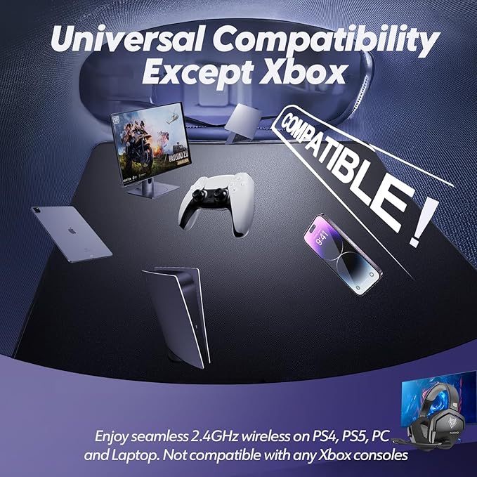 - Triple Mode All Devices Compatible: Seamlessly switch between 2.4GHz wireless (dongle-connected for PC/PS5/PS4), Bluetooth 5.3 (mobile/tablet pairing), and 3.5mm wired modes (Xbox/Switch compatibility) with zero latency, offering universal device adaptability and uninterrupted gaming immersion (Xbox Series only supports 3.5mm wired)