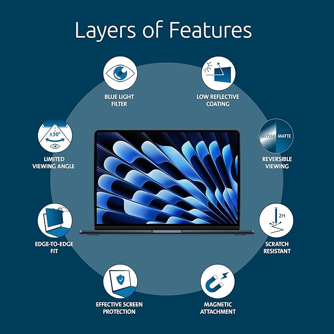 - MacBook privacy screen filter integrates seamlessly with 15" MacBook Air (2023 and later); attaches to magnets that are already built in to the MacBook's frame