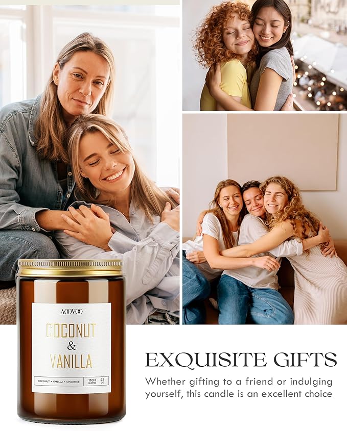 AOOVOO Vanilla Coconut Candle - Large Scented Candles 22oz, Soy Candles, Aromatherapy Candle, Soy Wax Candle