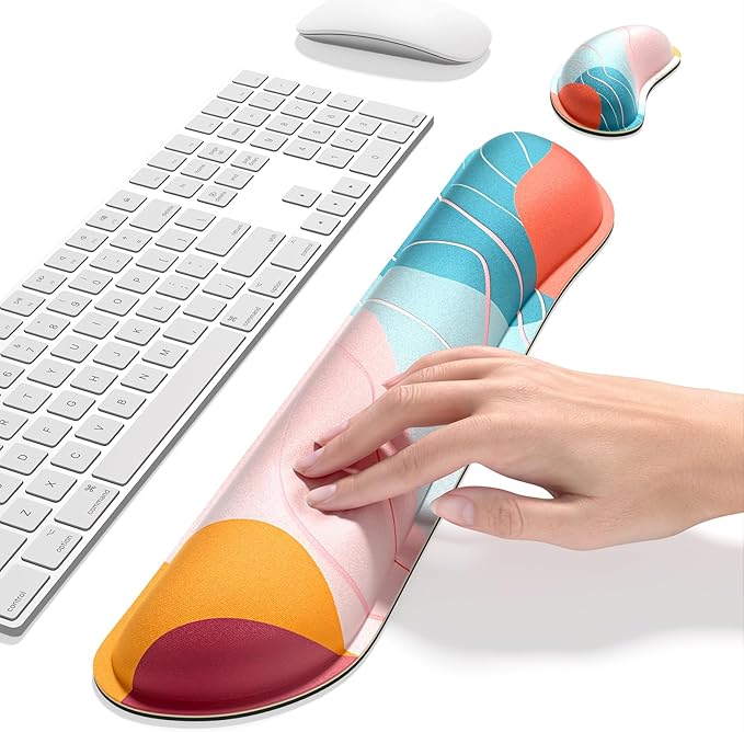 - Memory Foam Wrist Support: Memory foam inside the keyboard and mouse wrist rest keeps your wrists lifted and supported in a comfortable way.get full support to distribute pressure and put angled up wrists naturally