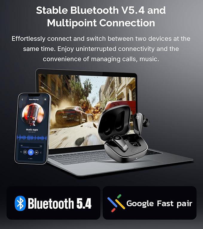 - [Multipoint Connection]:Effortlessly connect and switch between two devices at the same time. Enjoy uninterrupted connectivity and the convenience of managing calls, music, and more without having to constantly reconnect.