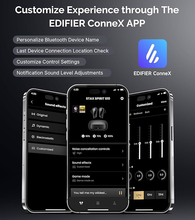 - [Customizable Experience]:Personalize your listening style and customize controls by easily using the EDIFIER ConneX app, tailored to enhance your audio experience.