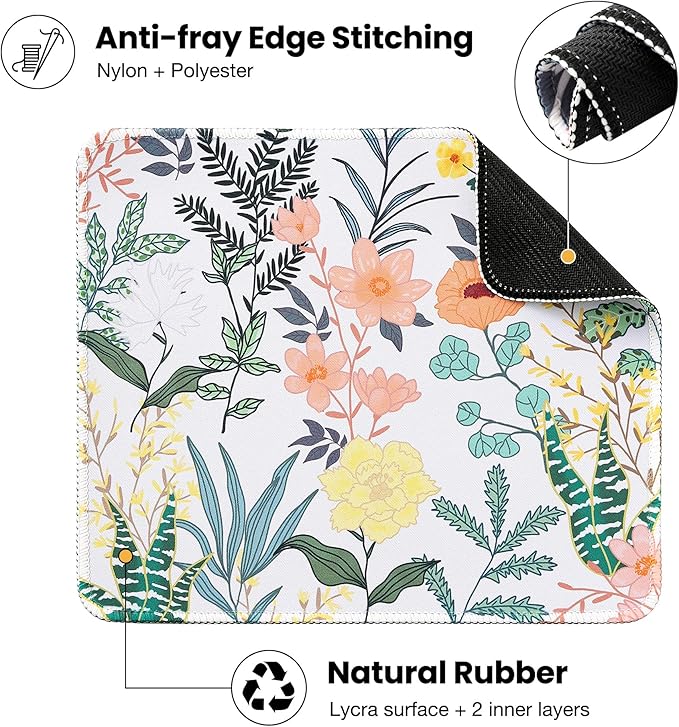 ALOANES Waterproof Mouse Pad with Stitched Edge, Premium-Textured Mouse Mat, Non-Slip Rubber Base Mousepad for Laptop, Computer & PC, Desk Mat for Gamer, Office & Home, Flower and Plant