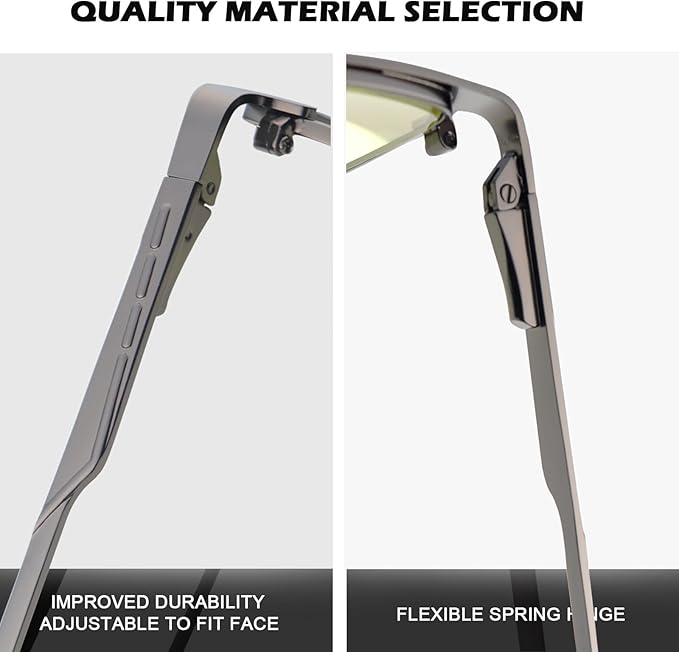 - Lightweight Design-The eyewear is designed with comfort in mind with spring hinge design. Lightweight construction and soft silicone nose pads for all-day comfort.