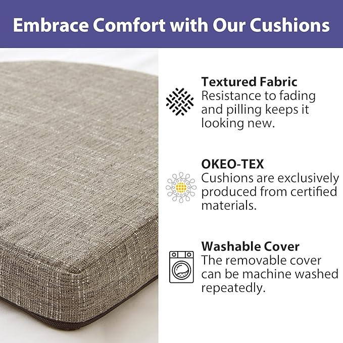 - EASY TO CLEAN & MAINTAIN: The removable zippered cover can be cold washed with a washing machine. The durable fabric resists wear and tear, ensuring long-lasting performance of the dining seat cushions.
