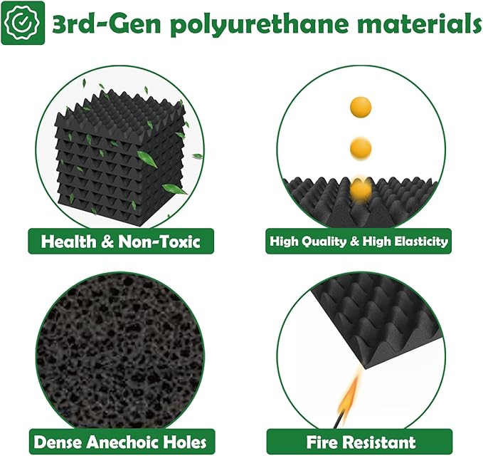 - 【Fire Resistance & Non-Toxin Safety】Compared to other panels, our Soundproofing Panels are more suitable for indoor usages. Fire rating:We have passed California Technical Bulletin 117-2013. Non-toxin:Our panels are made of polyurethane materials.