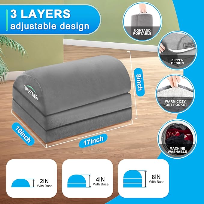 - Adjustable: Our under table footstool offers you three adjustable height options of 4", 6 "to 8". . You can increase or decrease the number of layers according to the needs of different scenarios, providing you with maximum comfort while maintaining a correct sitting posture.