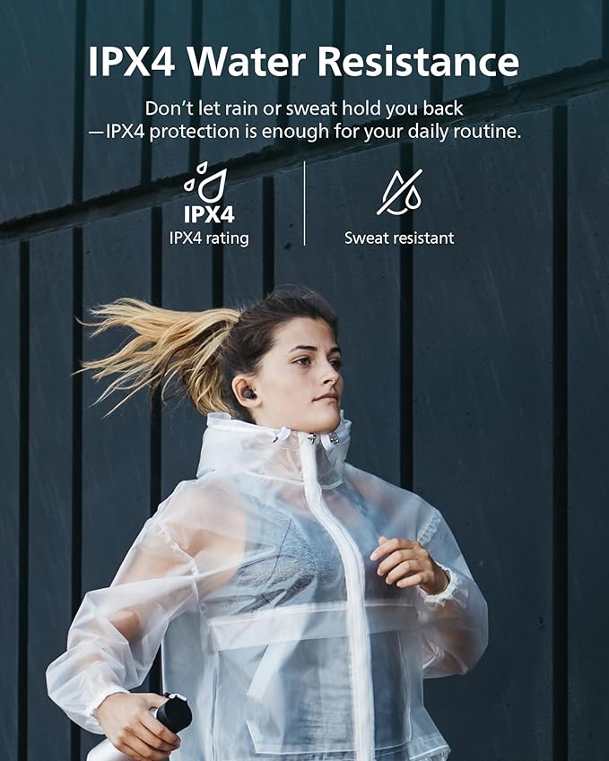 - EASY CONTROL: Touch controls on the earbuds simplify your experience. Activate dynamic bass boost, control playback, or answer calls effortlessly. With an IPX4 rating, these earbuds are water-resistant, so rain or sweat won't hinder your workout.