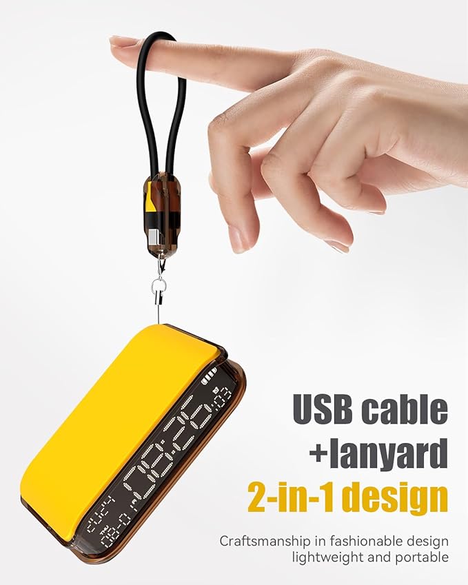 - Interesting rotating action to switch functions, small and lightweight, unique design of the lanyard, which is also USB-cable. You can use the lanyard to hang it on your backpack, easy to carry, LED Display screen, Easy to see big number, the night display is soft and not dazzling. It is perfect for all ages.
