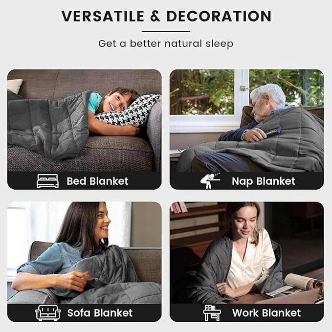- 【UPGRADED 3.0 VERSION】ZonliI all size weighted blankets feature 5"x5" compartments with upgraded precision stitching and a 5+2 layer lining to prevent bead leakage and shifting. Filled with temperature-regulating glass beads, they ensure even weight distribution and year-round comfort.