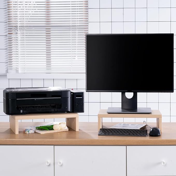 Dual Monitor Riser, 2 Pack Stand for Desk, Computer Stand Riser for 2 Monitors/Laptop/PC, Beige Wood Desktop (1-Tier)