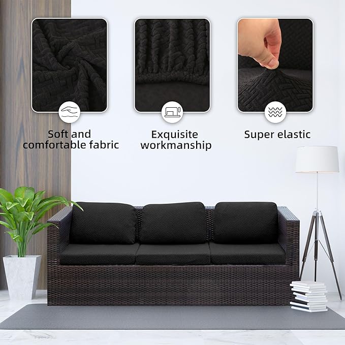 8Pcs Stretch Patio Cushion Cover Outdoor Cushion Cover Replacement Slipcovers Outdoor Cushion Covers Thick Jacquard Textured Twill Fabric Porch Patio Furniture Protector(Black,Cover,Only)