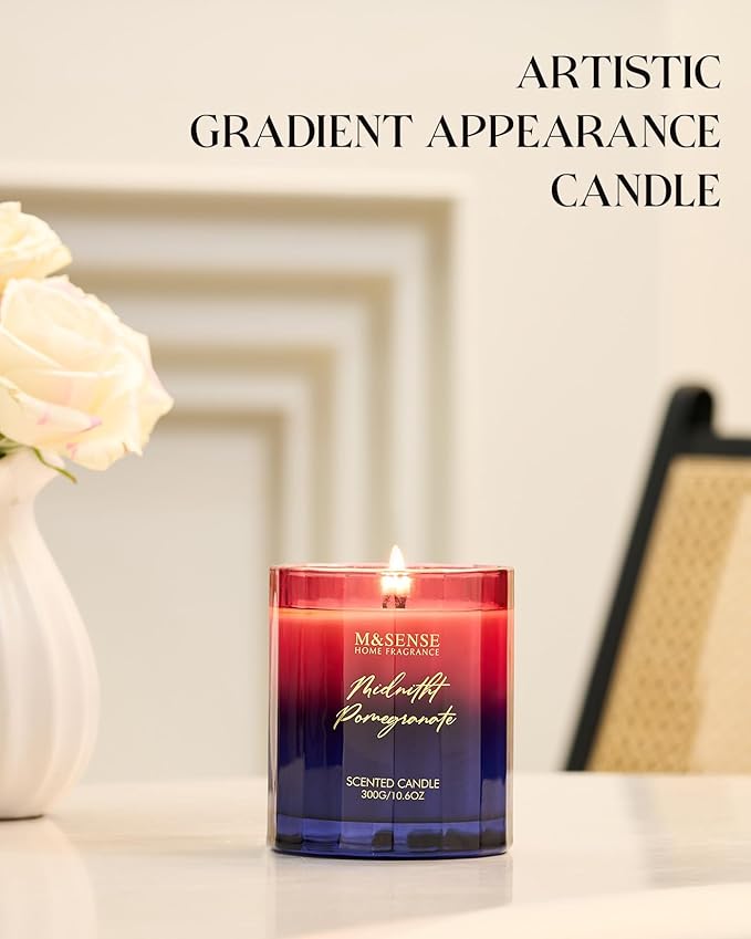 M&SENSE Midnight Pomegranate Scented Candles, 10.6oz 60 Hours Natural Soy Wax Long Burning Aromatherapy Candle for Meditation Relaxing Home Decor for Women Men