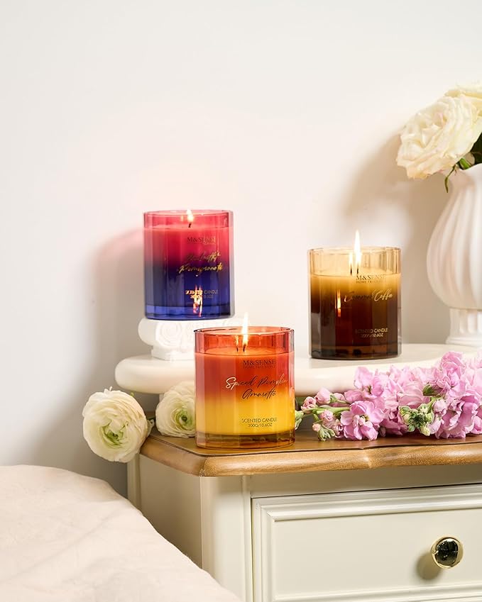 - Sustainable Formula - M&SENSE candles are all made from natural ingredients which are a blend of natural soy wax and vegetable wax. In addition, our scented candle comes with a lead-free cotton wick. It is non-smoky with a clean wax pool when lit.