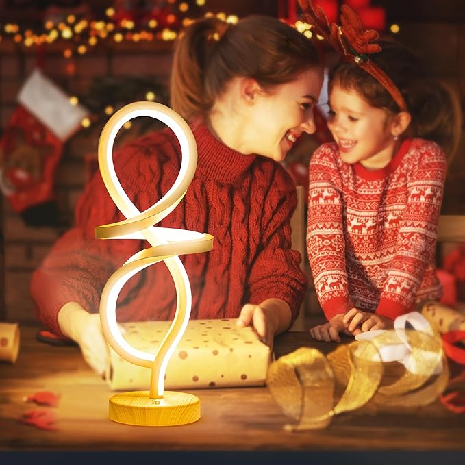 - 【Modern Spiral Design】- This modern lamp has an elegant spiral aesthetic design. The wood grain color finish adds a sense of personality. The spiral design provides stable and soft light, and also creates a comfortable artistic aesthetic atmosphere. It is a unique table lamp suitable for living rooms, bedrooms, offices, or as a bedside lamp or night light for bedroom decoration.
