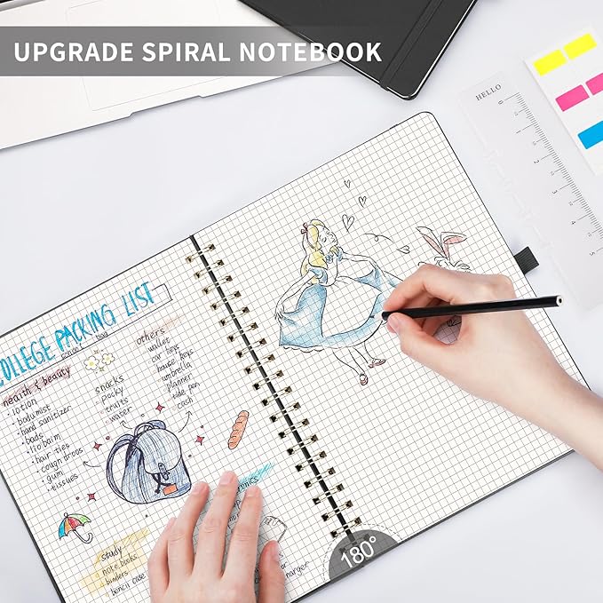 - HARDCOVER LEATHER JOURNAL: This spiral notebook features a durable, waterproof vegan leather cover that protects your notes from damage. The double-wire binding allows for easy folding and 180° lays flat for convenient writing
