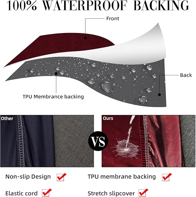 8Pcs Stretch Patio Cushion Covers Waterproof Outdoor Cushion Covers Patio Couch Cover Slipcovers, for Outdoor Furniture Protector Covers Replacement(Cover Only) (Wine red)