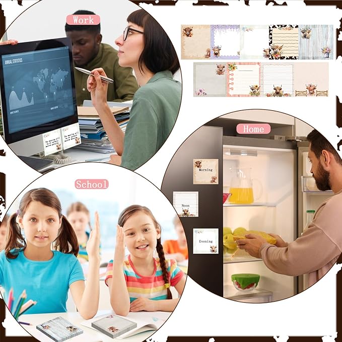 - Applicable Occasions: Highland cow sticky notes set has a wide range of applications, which can be used in office, school, home, and can be used for matter reminders, notes and memos, time management and organization classification, daily reminders, message exchange, recording study notes, to-do lists and so on. Also, they make a thoughtful and ideal gift for family, friends, colleagues or any of your favorite people.