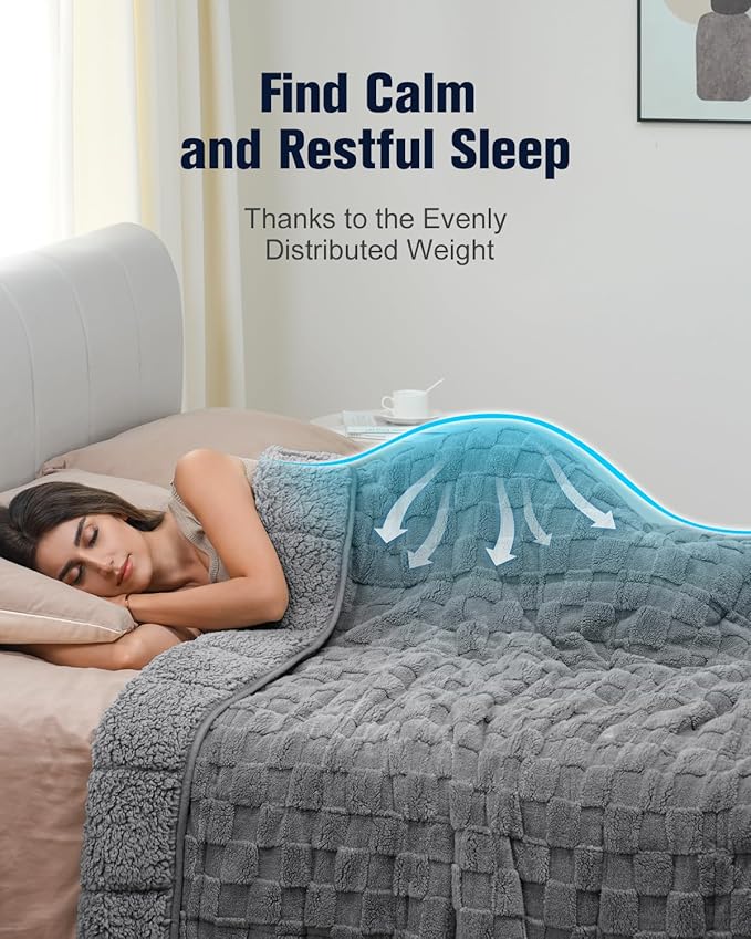 - Double-Sided Softness: This heavy blanket is made from OEKO-TEX certified 260gsm checkered fleece and 220gsm Sherpa fleece, giving it a plush, velvety softness that feels like pure luxury against your skin. With refreshing hues and a unique 3D checkerboard pattern, it adds a chic, modern touch to any home decor