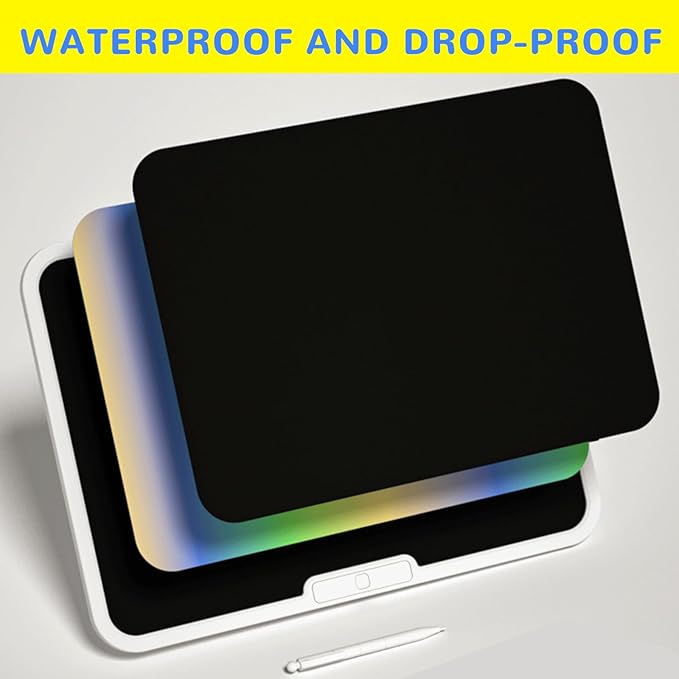 - Easy To Use And One-click Clear Screen Lock: This kids' doodle drawing board uses press-sensing technology to draw, doodle or doodle anything you want with a stylus or any hard object! The kids' doodle pad has an erase key and screen lock function to clear the content in one second. A lock switch prevents accidental deletion. Close, press the erase button to quickly clear.