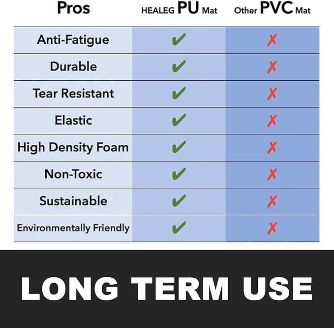 - Multi-Purpose Use:Perfect for standing desks, offices, kitchen counters, laundry rooms, and workbenches. This standing mat is ideal for anyone who stands for long periods at home or at work.