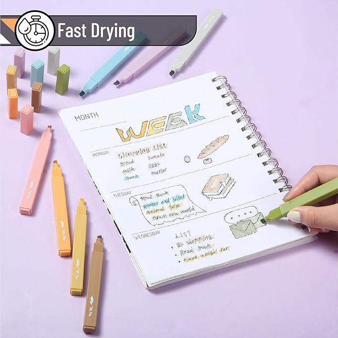 - These highlighters feature a unique palette of muted and soothing tones, perfect for creating an elegant and harmonious look in your notes or journals.