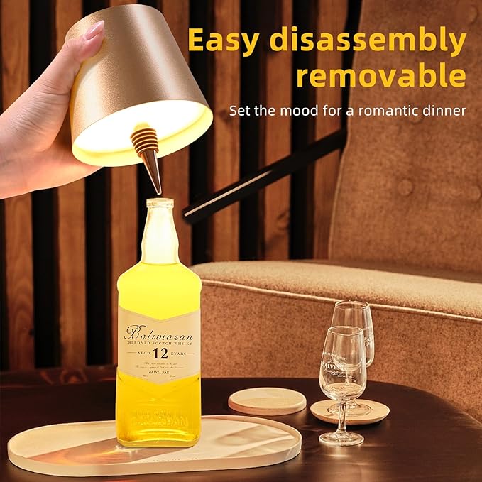 - TOUCH DIMMABLE WIRELESS TABLE LAMPS: The wireless table lamps are available in three light colour temperatures, allowing you to create a warm and beautiful atmosphere for any occasion. Whether you want warm, comfortable light or vibrant colours, the LED bottle light will meet your needs.
