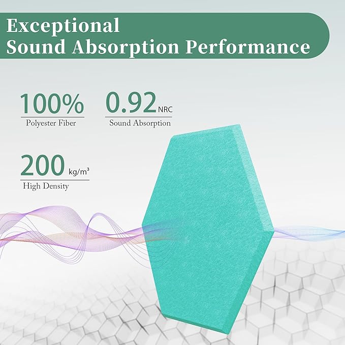 - 【Stylish and Creative】We offer hexagonal sound-absorbing panels in the size of 12"X10"X0.4", available in 18 colors. They are easy to cut into any shape, allowing you to unleash your creativity and design a vibrant and dynamic space.