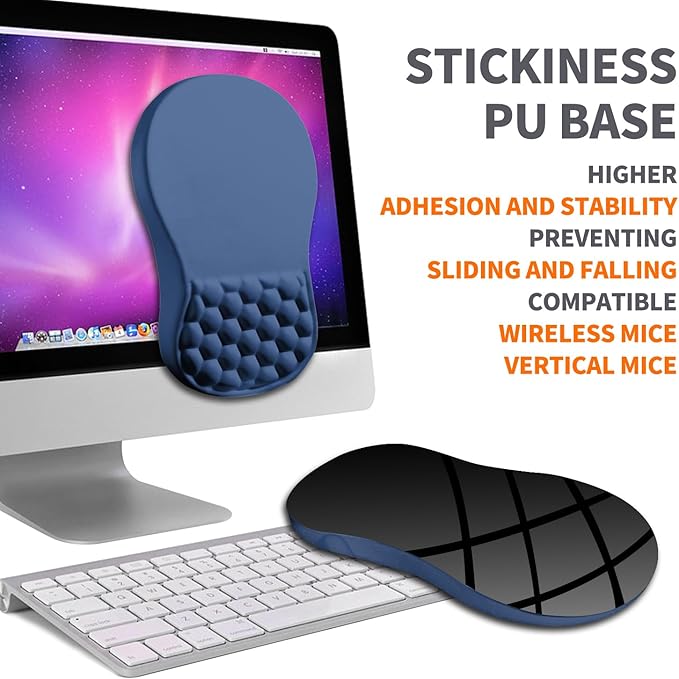 - 【Stickiness PU Base】Wrist rest mouse pad base is made of PU, which has higher adhesion and stability than the rubber base, effectively preventing accidental sliding and falling of the mouse pad.