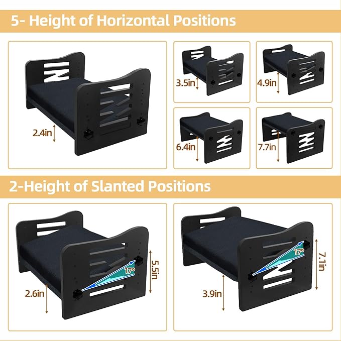 Myplace Bamboo Adjustable Under Desk Footrest with Memory Foam Pad - Ergonomic Foot Rest with 7-Level Adjust, Slanted Foot Rest Stool for Home Office Kitchen Bedroom (Black)