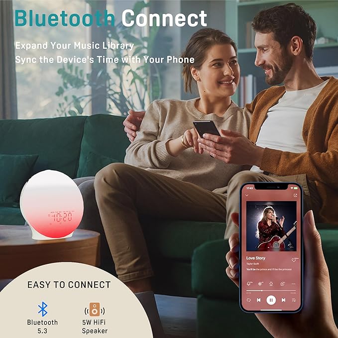 JALL Sunrise Alarm Clock White Noise Sound Machine with 22 Soothing Sounds, 17 NightLights, Bluetooth Speaker, Wake Up Light Alarm Clock for Bedrooms, Heavy Sleepers, Ideal Gift for Baby, Kids Seniors