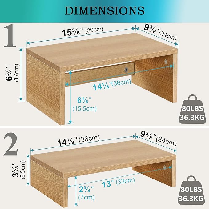 - 【Adjustable Stand】This multifunctional stand can be used in combination or separately, according to your needs. ★Raise monitors/laptops/printers/game boxs ★Relieve fatigue ★Increase storage space.