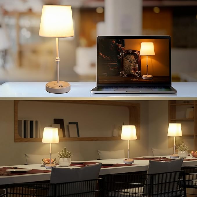 - 【Dimmable 】 cordless LED table lamp has three brightness settings. Simply change the intensity of the light by touching the power button once, sequentially to achieve the desired brightness. The lowest setting could be used an ambient light or night light. The highest setting is suitable for desk or bedside reading.