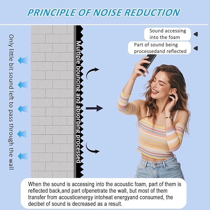 - Fast Expansion - Our soundproof wall panels for bedroom, using Vacuum sealed package, 12-24 hours after opening the package can be restored to its original state, wall sound absorbing panels weight is easily ease of cutting and installation, changes will not affect the performance of the soundproof foam