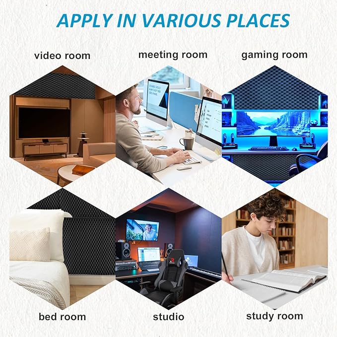 12 Pack, 12 x 12 x 2 inches. Acoustic Panels, Wall Panels, Sound Panels. Used for soundproofing. Soundproof Foam Panels for Walls(12 Black)