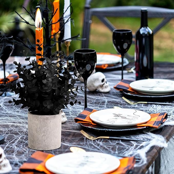 - 【Small Fake Plants】 The eucalyptus leaves of black flowers are made of environmentally friendly plastic, it can be well integrated with other Halloween elements to create a scary atmosphere, can be very good decoration for halloween decor to add a strong holiday atmosphere to your home.After receiving the black flowers artificial, it is necessary to adjust the branches and trunks of the simulation plants to a perfect angle to achieve a perfect appearance.