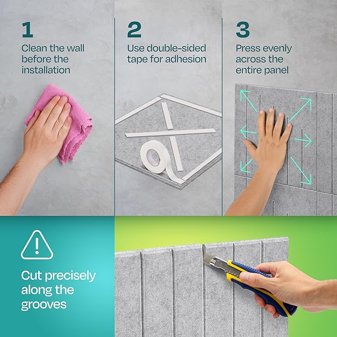 - [NO-FUSS SETUP]: Install these stunning sound proofing panels for walls in minutes with double-sided foam tape — it's that simple.