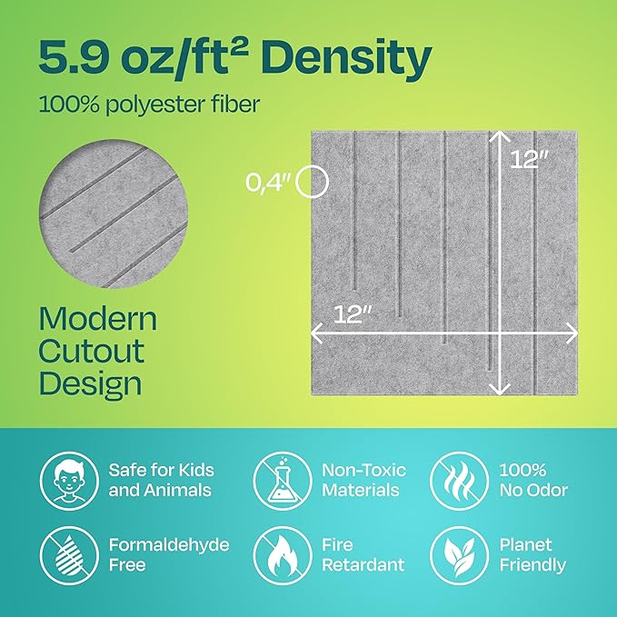 - [UNIQUELY CARVED ACOUSTIC PANELS WITH SOUND ABSORBING POWER]: Made from high-density 5.9oz/ft^2 (1800gr/m^2) material, these acoustic wall panels provide excellent noise absorption, reduce echoes and reverb, and create beautiful, geometric patterns.
