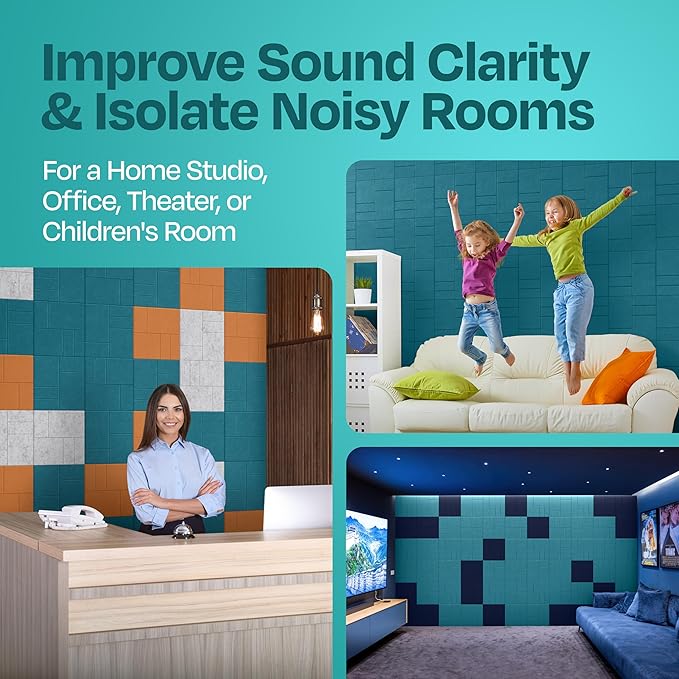- [VERSATILE NOISE CONTROL FOR MULTIPLE ROOMS]: Forget about the old sound proof foam panels for walls. These sound absorbing panel solutions effectively reduce echoes and unwanted noise, providing superior acoustic comfort for various spaces.