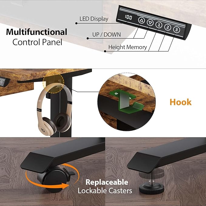 - Ergonomic Sit Stand Desk - The electric standing desk is equipped with a newly upgraded motor that could support desk up & down 20,000 times, the desk height can be adjusted from 27.6" to 46.5". The sit to stand desk also set an easy to use control panel with LED display and 3 memory buttons that adjust the height you want.