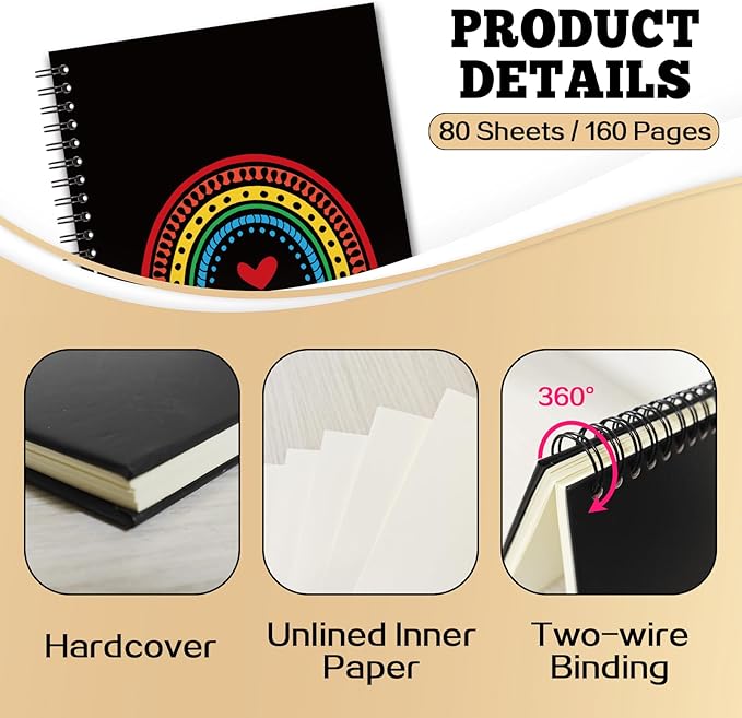 - Practical Design: Our notebooks are bound with double spiral coils, can be folded 360° freely without creases, and the pages can be easily torn off without falling apart. The unique design and color scheme on the black hard cover add a personalized touch to your note-taking experience and make your notebook no longer boring