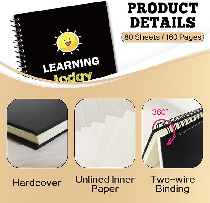 - Practical Design: Our notebooks are bound with double spiral coils, can be folded 360° freely without creases, and the pages can be easily torn off without falling apart. The unique design and color scheme on the black hard cover add a personalized touch to your note-taking experience and make your notebook no longer boring