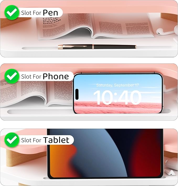Monitor Stand Riser,2 Tier Corner Wood Monitor Stand Sturdy Computer Stand Multi-Purpose Desktop Storage Stand for Laptop,PC,iMac,Printer,Computer,Pink