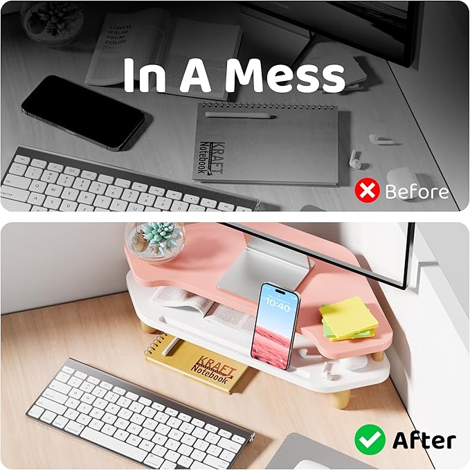 - Dual-Layer Design for Optimal Storage:With its dual-layer design, this monitor stand provides extra storage space to keep the desk organized. It’s ideal for neatly storing stationery, notebooks, and other small office items, ensuring a tidy workspace.