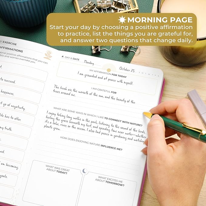 - SUPPORT A GRATEFUL & POSITIVE MINDSET – This 6-month daily gratitude journal helps you cultivate daily gratitude and practice positive affirmations, fostering a more mindful and positive outlook on life.