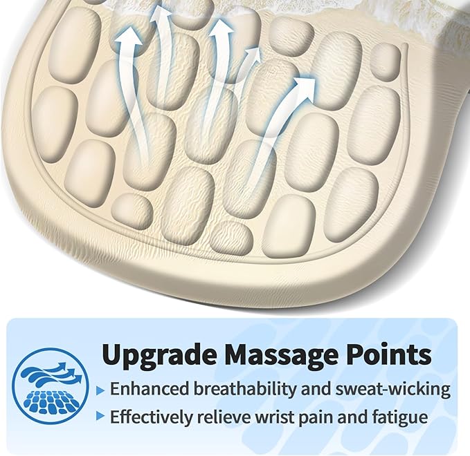 - Ergonomic Mouse Pad: The innovative ergonomic 8-degree slope and massage bump design perfectly support the wrist and palm. Massage bump design can effectively relieve wrist pain and fatigue, improve carpal tunnel syndrome (CTS), strengthen the air circulation between wrist and mouse pad, prevent sweating, and keep your wrist in the most comfortable state.It's your best choice of desk mouse pads.