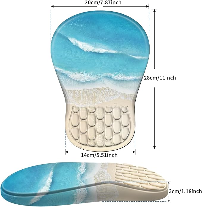 Ergonomic Mouse Pad with Wrist Rest Support, Mousepad with Comfortable Memory Foam Wrist Rest and Non-Slip PU Base for Pain Relief, Computer, Laptop, Office, Home (Beach-1)