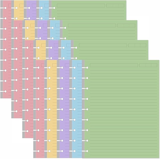 (4-Pack) 9-Disc Discbound 5 Colorful Line Paper Pre-punched Happy Planners Inserts, 400Sheets/800Pages Classic Size Line Loose-Leaf Paper, Per Color 80 Sheets, 7" x 9.25"