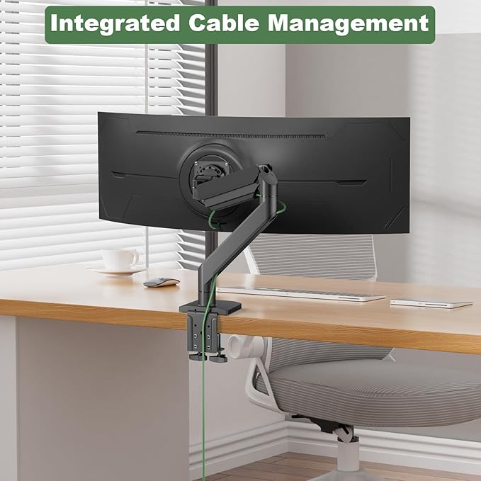 - Articulating Monitor Mount: Thanks to the improved built-in gas spring mechanism, the long reach monitor arm can be extended forward up to 23.7" and adjusted to a maximum height of 23.6", making it a great addition to your standing/sitting desk setup; the integrated cable management system easily routes messy power cords/cables to keep your desktop clean and organized