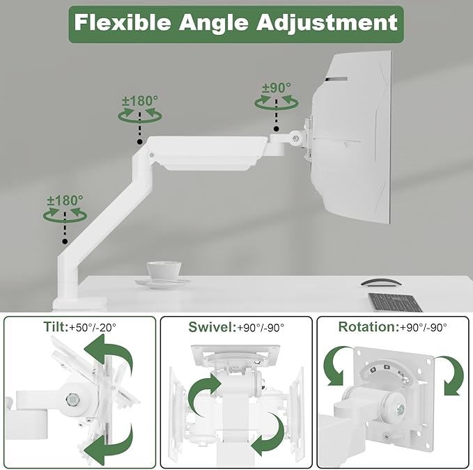 - Articulating Monitor Mount: Thanks to the improved built-in gas spring mechanism, the long reach monitor arm can be extended forward up to 23.7" and adjusted to a maximum height of 23.6", making it a great addition to your standing/sitting desk setup; the integrated cable management system easily routes messy power cords/cables to keep your desktop clean and organized